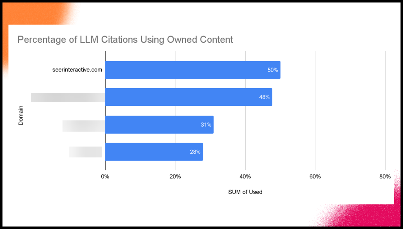 We run the prompt... "Tell me about Seer Interactive" but we also run it for 3 other competitors. As you can see we drive more of our own citations than our competitors do.